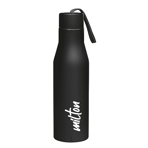 MILTON Super 750 Stainless Steel Water Bottle 650 ml, Single Walled, ISI Certified I Leak Proof Lid, Rust Proof I For School, Office, Gym I Black