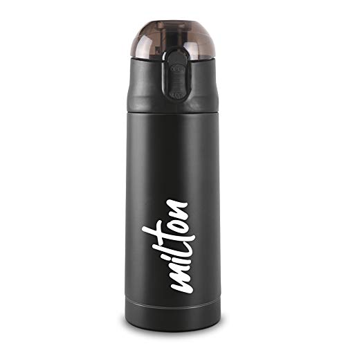Milton New Crown 600 Thermosteel Water Bottle 500 ml with One Touch Safety Lock, 24 Hours Hot and Cold, Leak Proof Lid, ISI Certified I Vacuum Insulated I for Office, Gym, School I Black