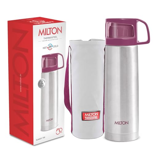 MILTON Glassy 750 Thermosteel Vacuum Insulated Double Walled Flask with Drinking Cup lid & Jacket, 750 ml Water Bottles,24 Hours Hot & Cold, Easy to Carry,Rust Proof, Tea, Coffee, Travel Bottle,Pink