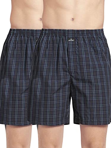 Jockey 1223 Men's Super Combed Mercerized Cotton Woven Checkered Boxer Shorts with Side Pocket (Pack of 2)
